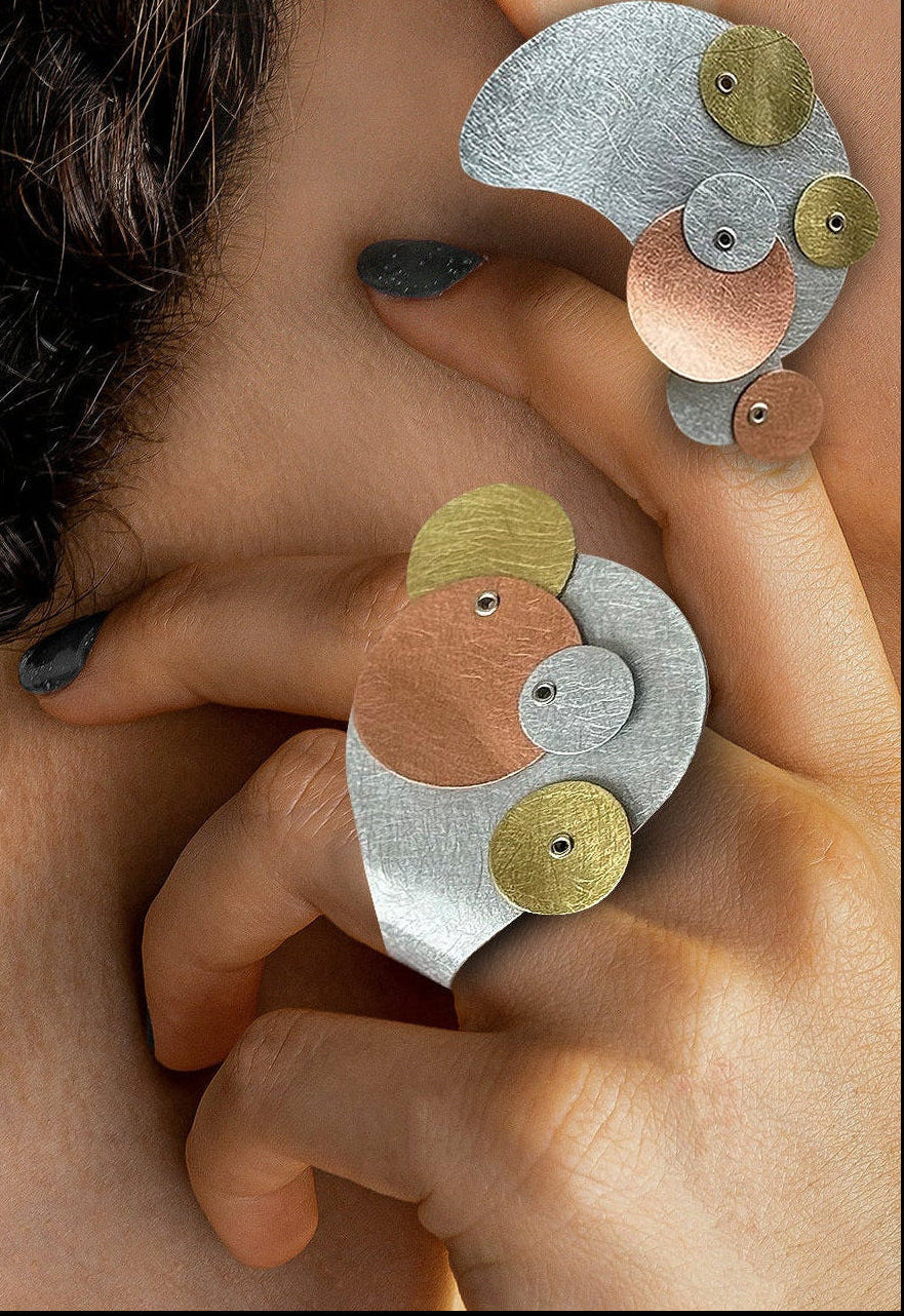 TICKLE 3 Large Mixed Metal Circle Earrings from BUBBLES