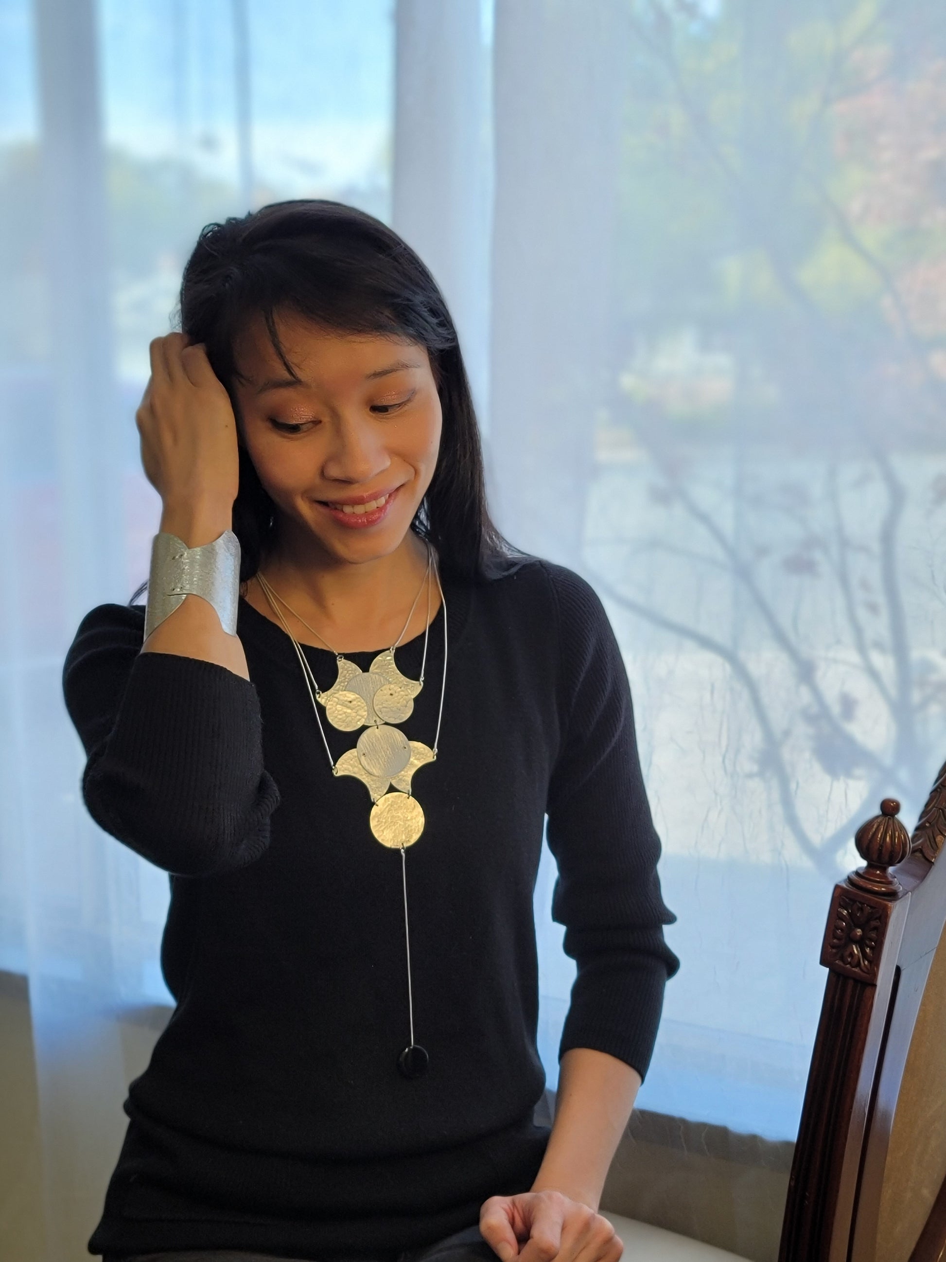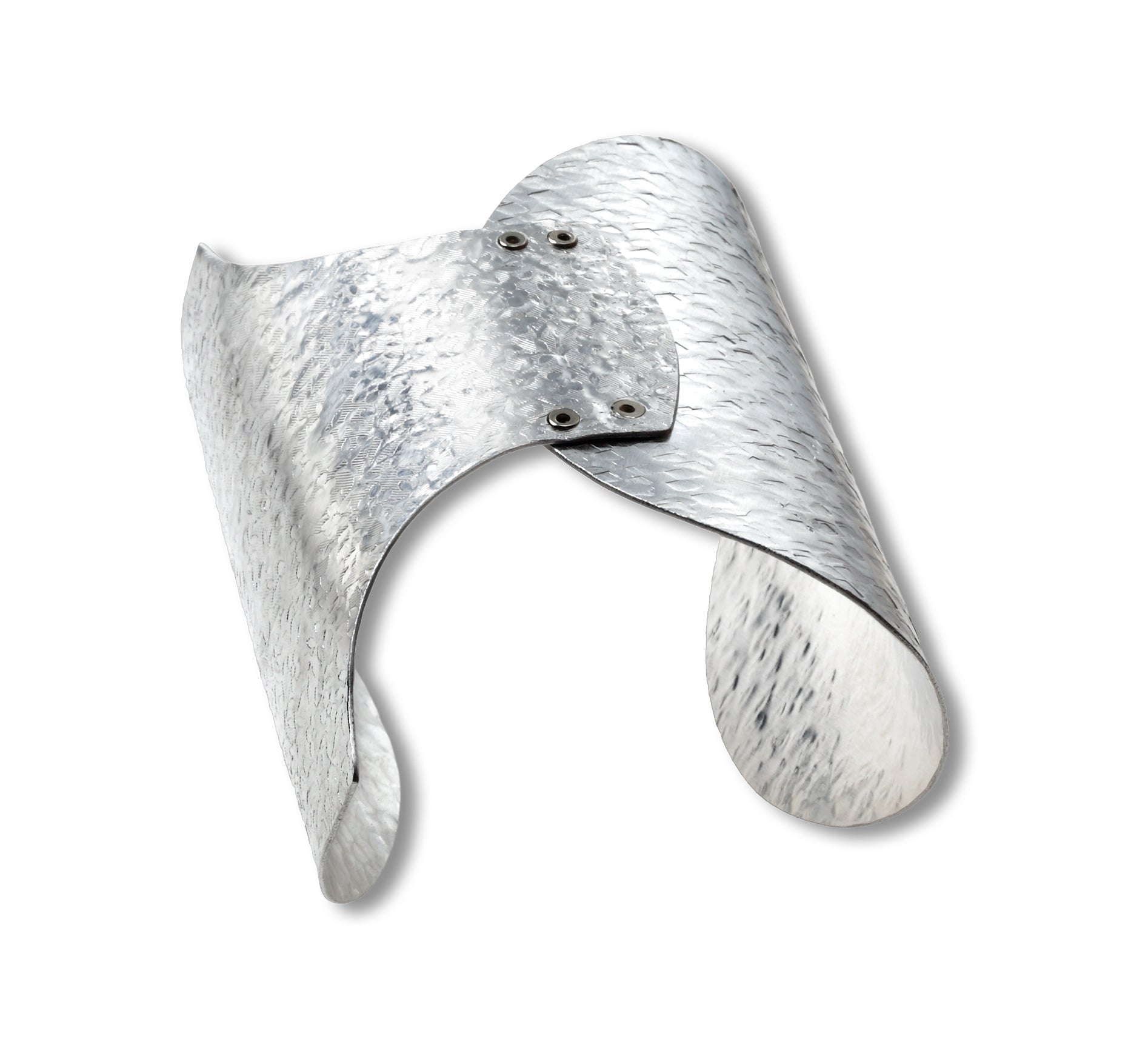 Two piece aluminum cuff that features intricate floral pattern in the metal. Goes well with any piece from the Lunar Collection, but is a beautiful handcrafted essential accessory that can stand on its own.
