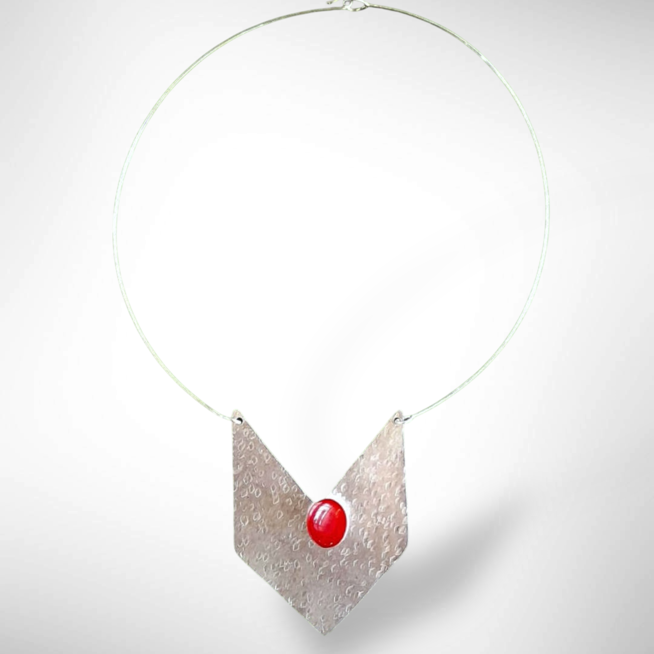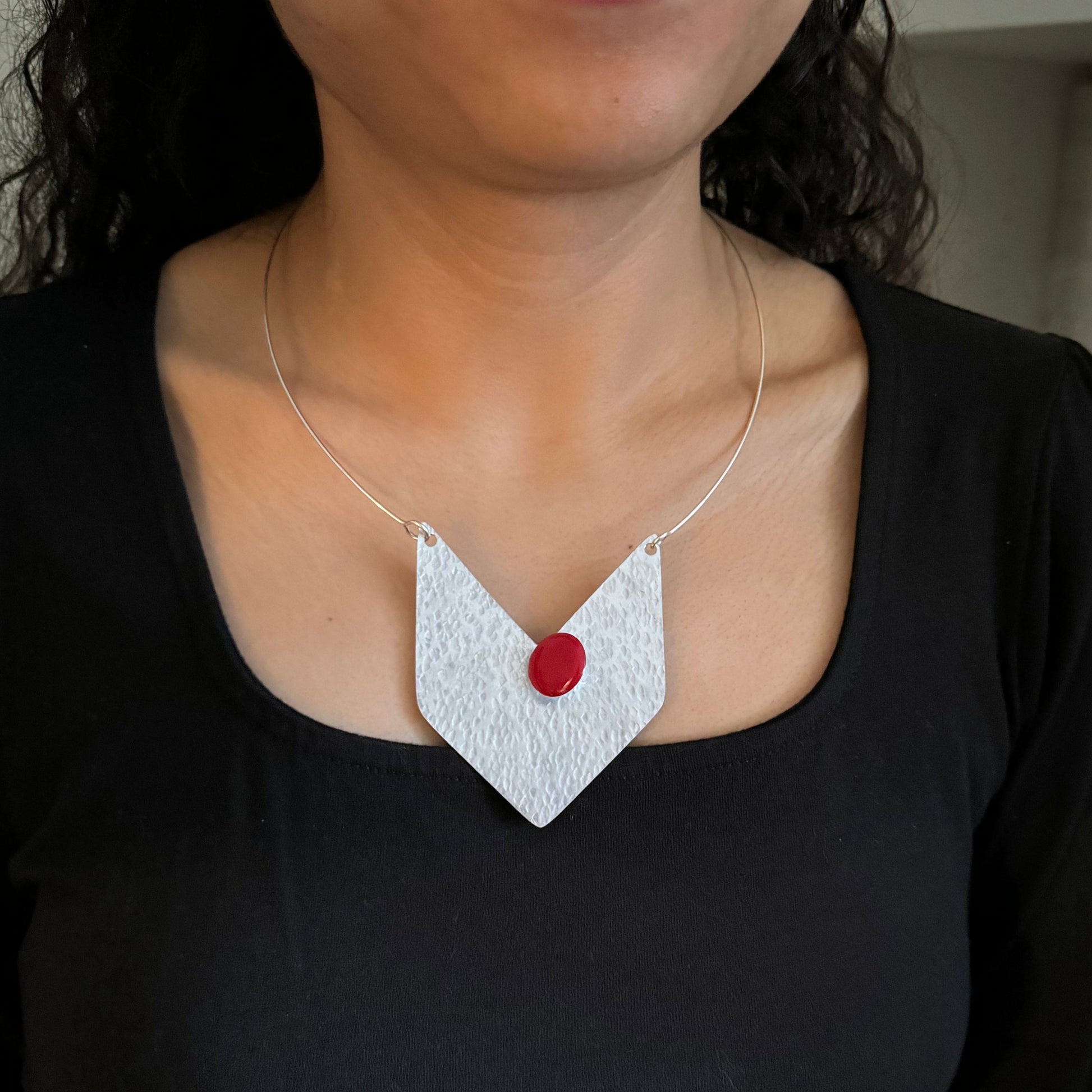 EDGE Chevron shaped aluminum pendant necklace with red accent